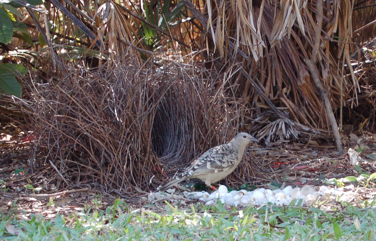 Evans, C. & Kelley, L. A. (in press) Great bowerbird males upregulate multiple sexual signals following bower wall removal. Animal Behaviour
